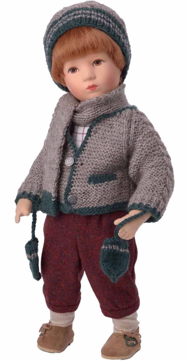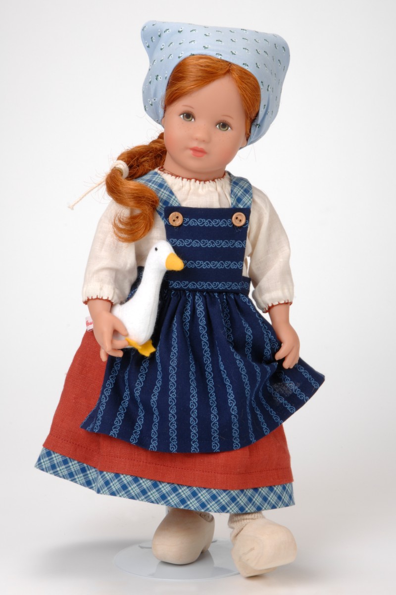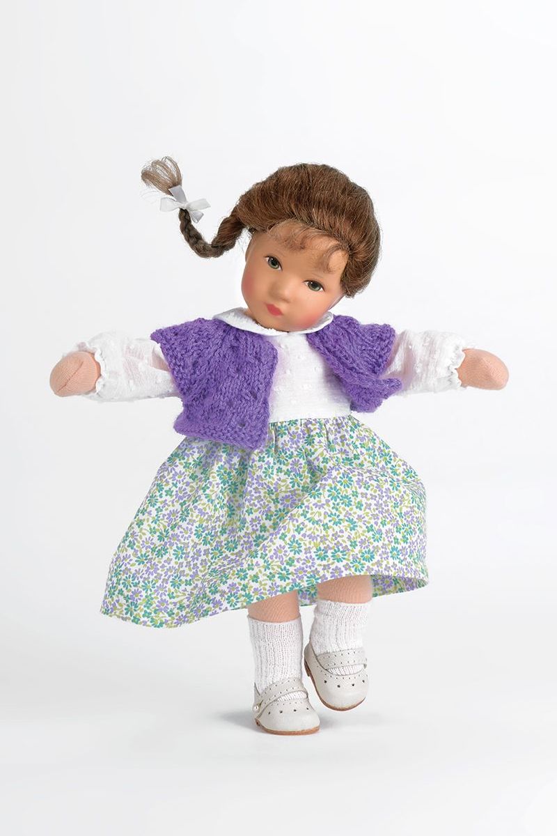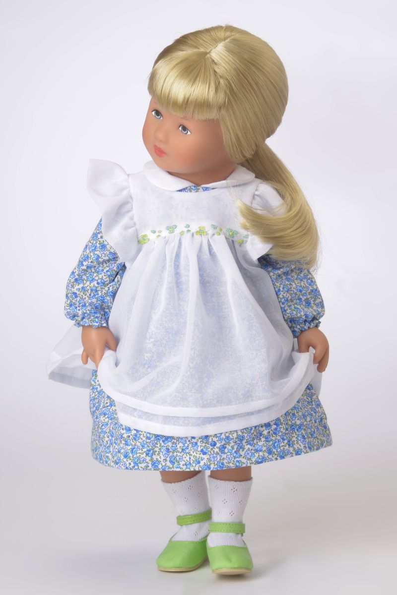 39 cm (Glückskind), Rumpf aus Stoff, Arme, Beine und Kopf aus Vinyl, Kanekalon-Perücke